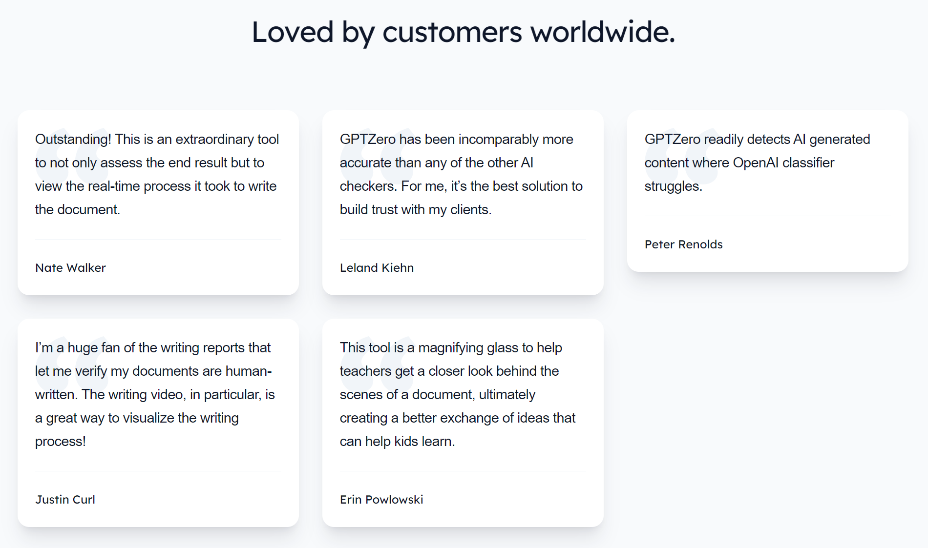 GPTZero has been incomparably more accurate than any of the other AI checkers. For me, it’s the best solution to build trust with my clients.